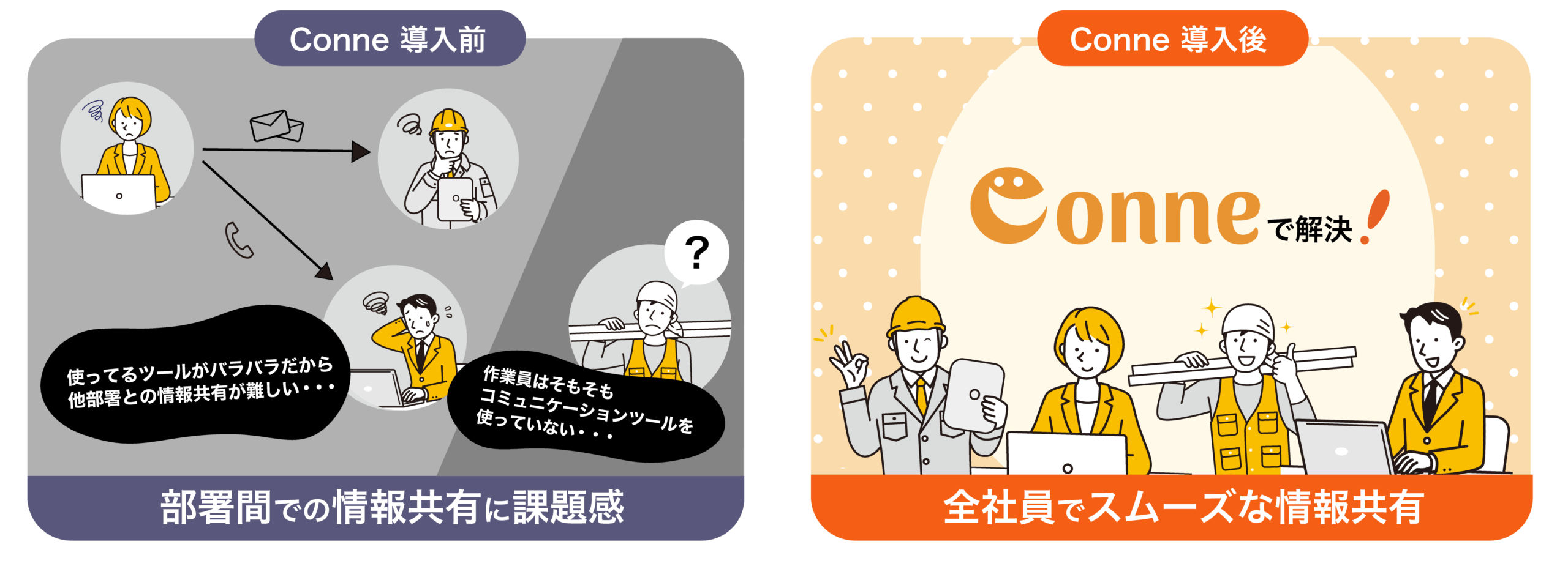 以前は部署ごとに違う情報共有ツールを使っていたり、作業員の方はそもそもツールを利用していなかったりと部署を横断しての情報共有については課題感がありました。Conneであれば部署単位での情報共有も組織全体での情報共有も1つのサービスの中で集約できる点が導入の決め手となりました。
